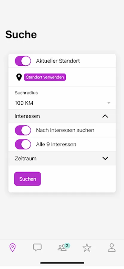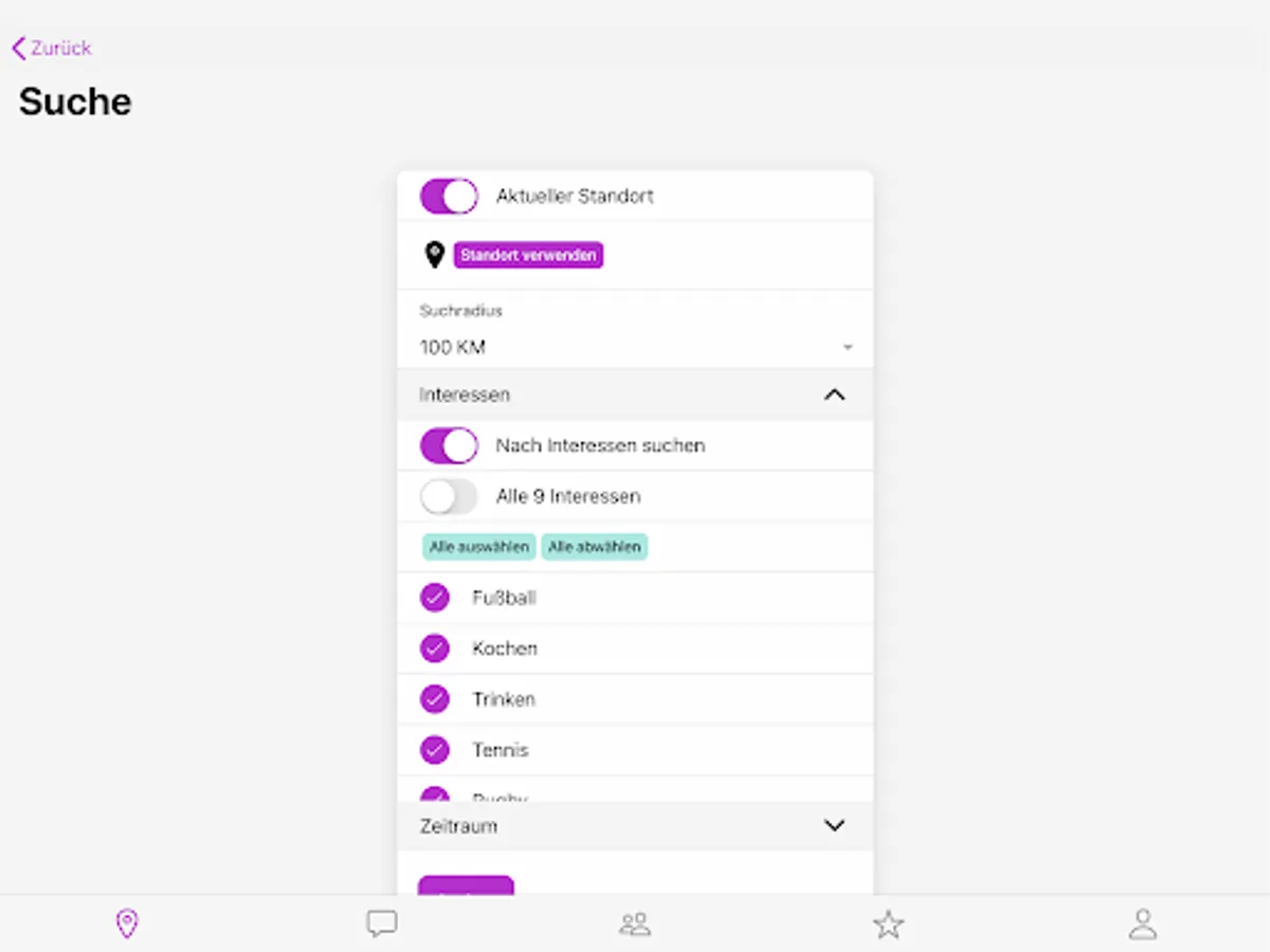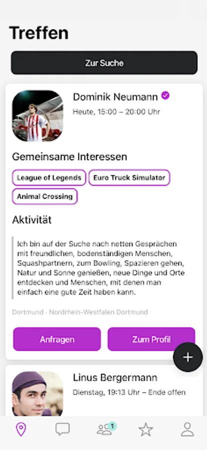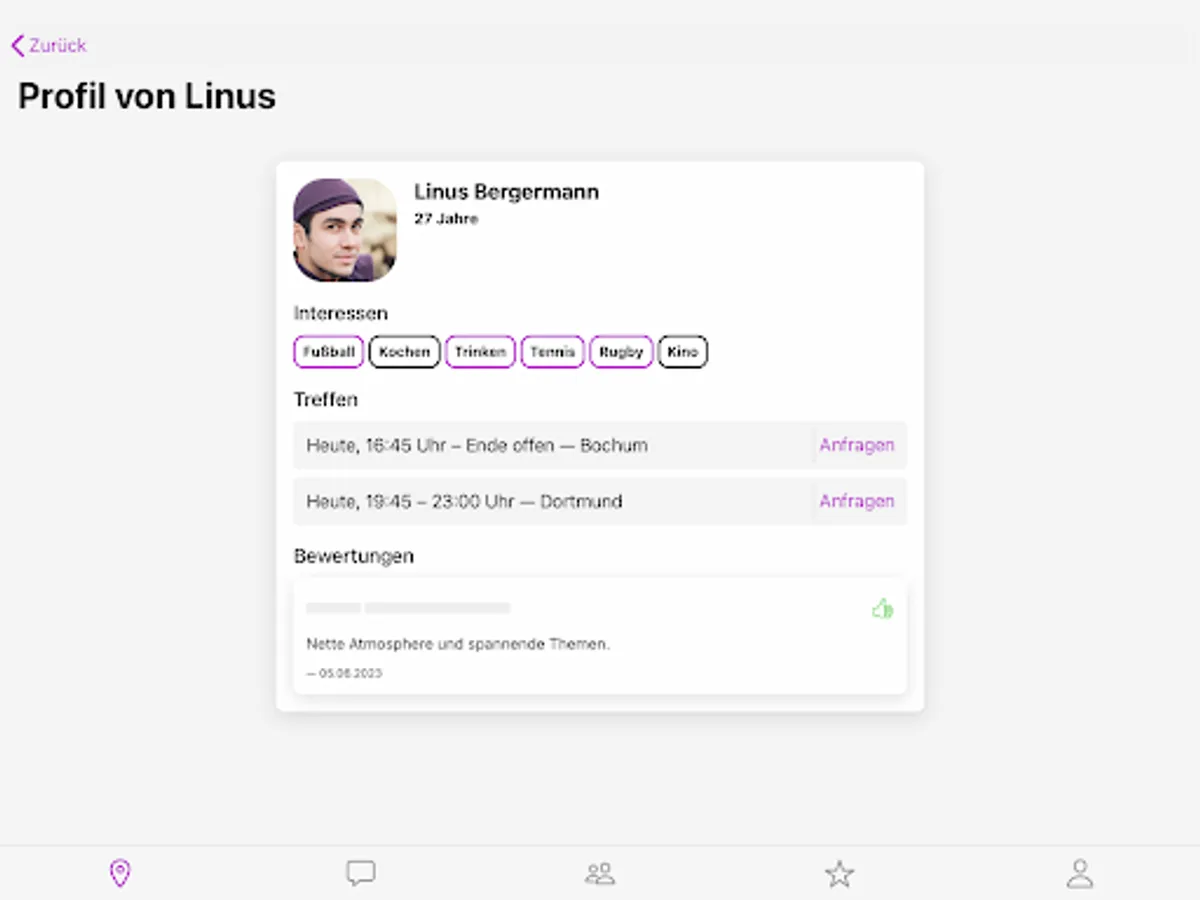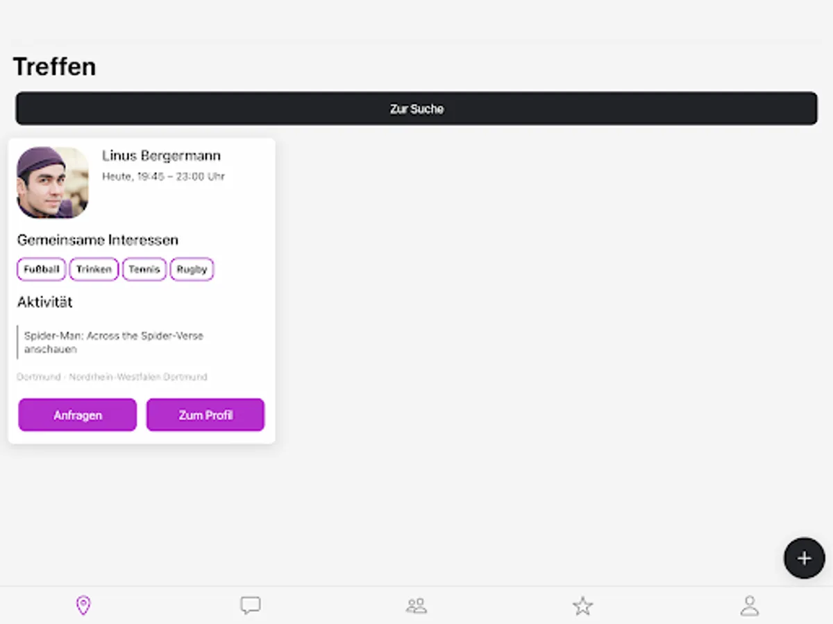 You can also ask other people who have one or more interests in common with you. You can find this directly on your start page in the app. People who do not share any interests with you are therefore not displayed in the app.