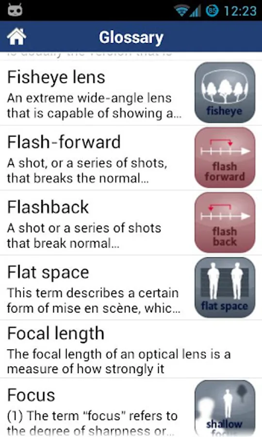 The German non-profit organisation 'Neue Wege des Lernens e. V.' supports schools in digital learning initiatives. This includes the production of digital learning assets and apps for educational use, particularly for non-STEM classes and subjects. We have a particularly strong commitment to supporting cultural Film Education with digital tools. The App "Close-up" provides clear and concise definitions of essential film language terms used in basic and advanced film courses. Though geared for use in high school (particular sixth forms) and higher education the glossary is appropriate for anyone generally interested in cinema, film and film analysis. The Close-Up Film Language Glossary contains a unique collection of 'Visual markers', which are visualizations of filmic means and techniques. Groups of visual markers provide a quick and comprehensive overview of important categories of film language. Additionally, a collection of useful checklists helps you analyzing the different aspects of film language in classroom study or when writing a film studies essay.