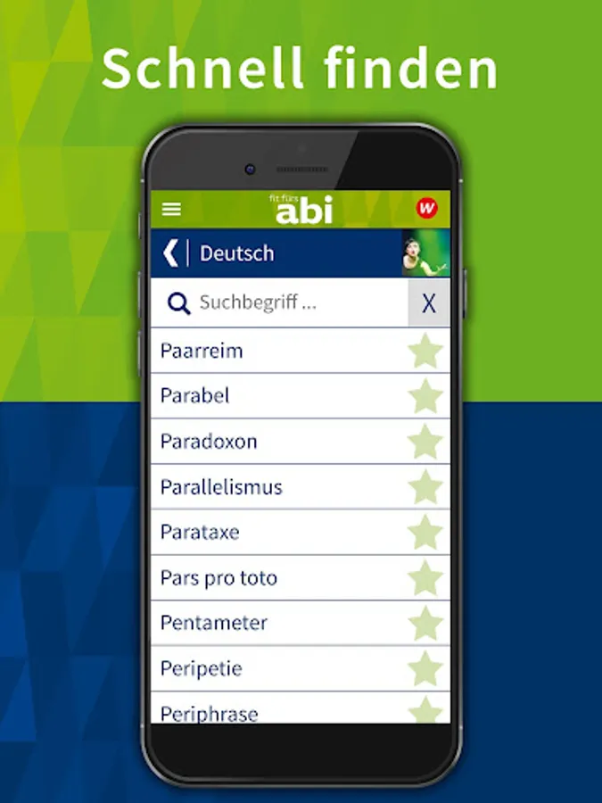 The free Fit for Abi App by Westermann is a must have for anyone looking to quickly and easily look up important terms for their high school diploma. The extensive glossary of more than 2,000 technical terms offers a total of 11 academic subjects: biology, chemistry, German, English, geography, education, history, mathematics, physics, politics and economics, music. A learning check with digital "index cards" helps memorizing.