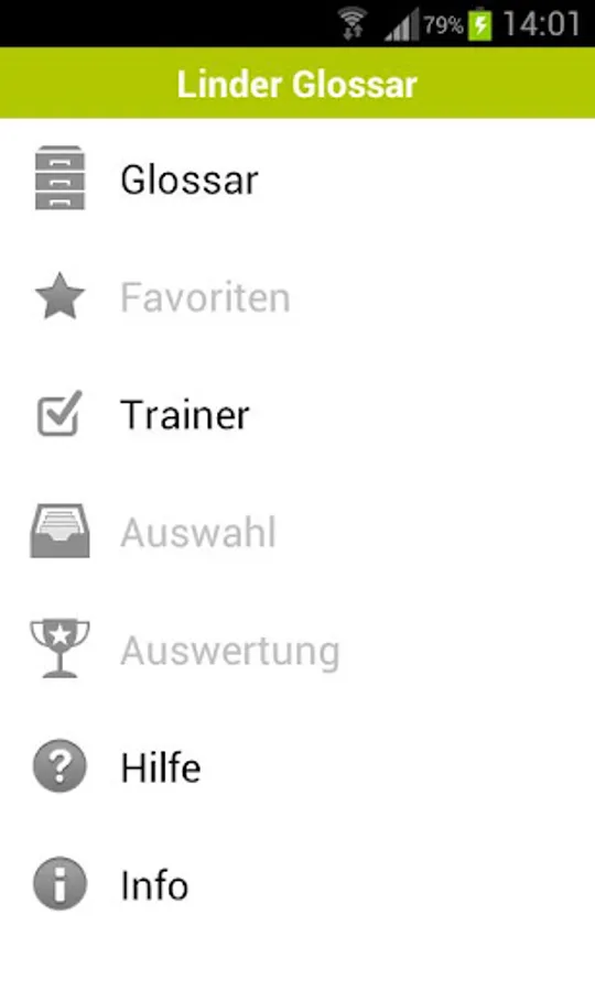 If you want to test the functionality of the "LINDER Trainer" in advance, then use the free "LINDER Glossary". It provides you with a complete glossary LINDER and 10 multiple choice questions all the features that will surely have the "LINDER coach".