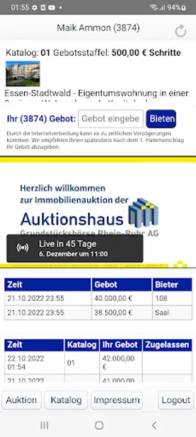 As an experienced manufacturer of the AMMON real estate agent software®, we have been working with numerous auction houses and other partners in the real estate industry for many years. With the AGB-RR-Bieten app you can also participate in the respective auction via app in addition to a browser version.