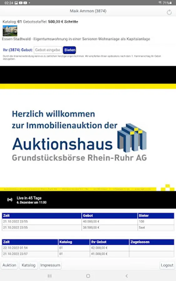 With this app you can follow our online auctions live after being invited and submit bids for real estate objects.