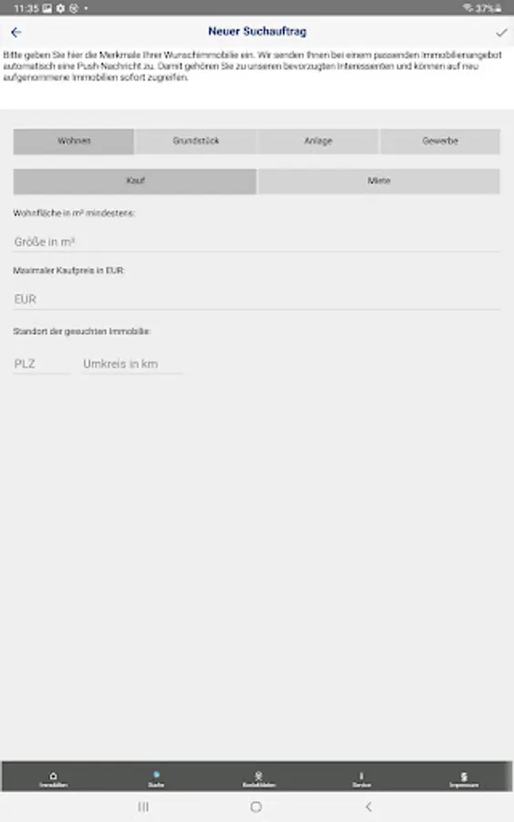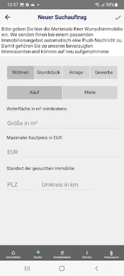 The Esch real estate app automatically sends you suitable real estate offers by push message to your mobile device.