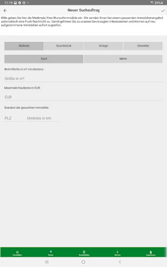 The Juber app automatically sends you suitable real estate offers by push message to your mobile device.