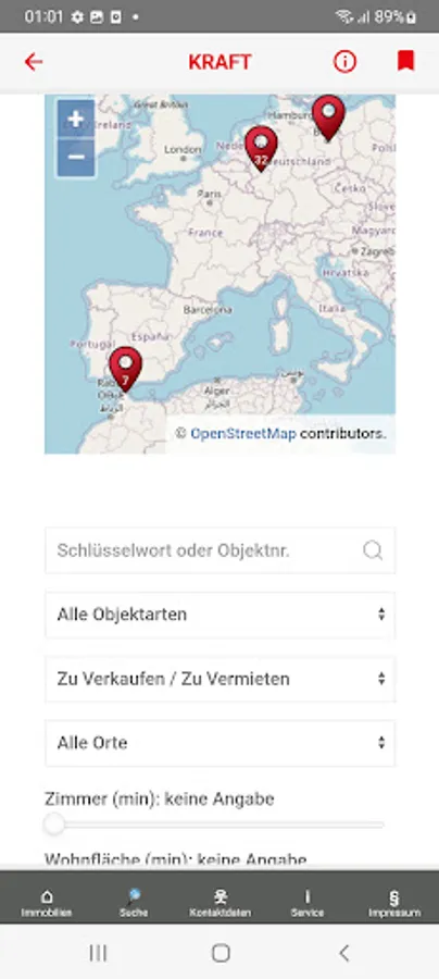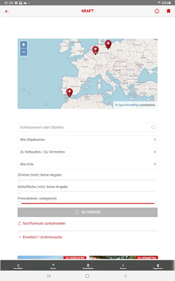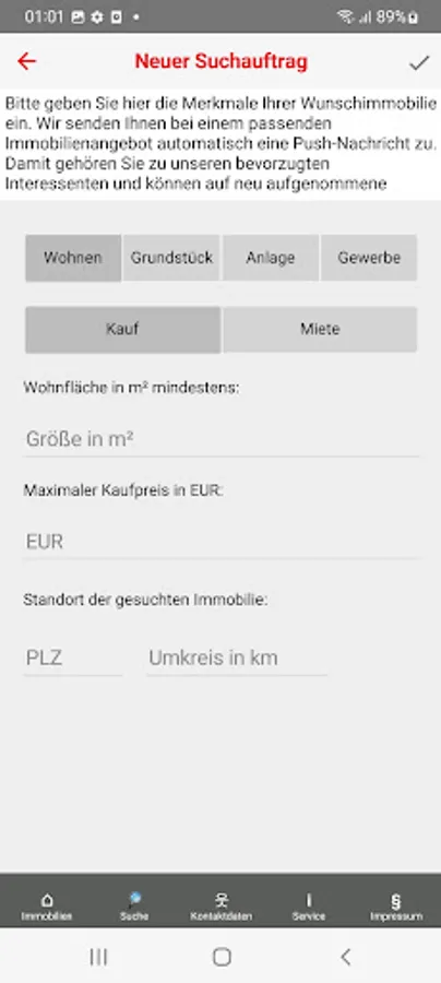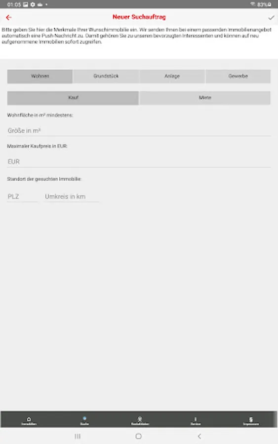 The KRAFT real estate app automatically sends you suitable real estate offers by push message to your mobile device.