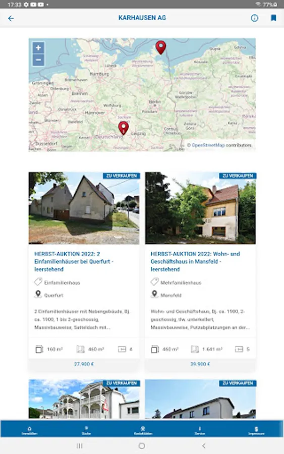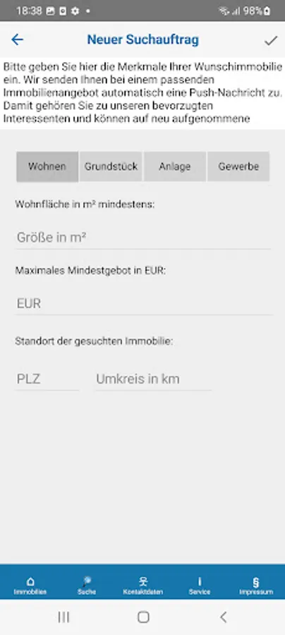 The AUKTIONSHAUS KARHAUSEN AG app automatically sends you push notifications to your mobile device about new suitable properties in the next auction.