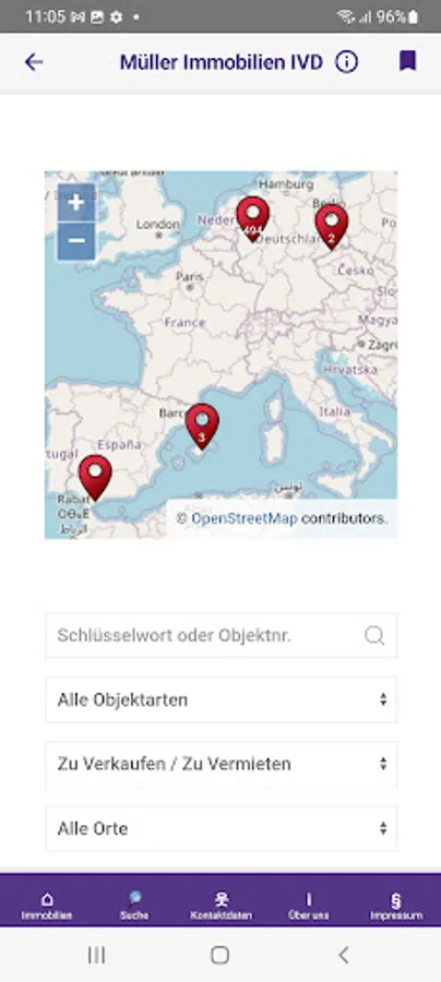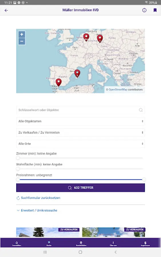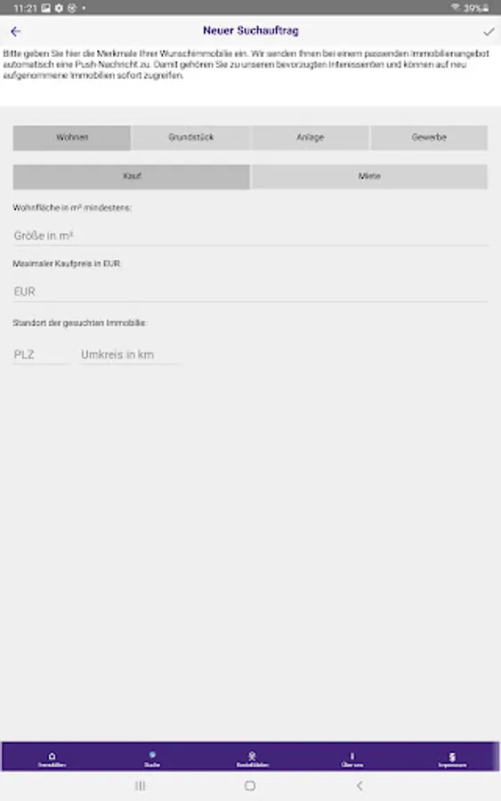 The Müller-Immobilien app automatically sends you suitable real estate offers by push message to your mobile device.