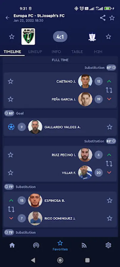 • Receive real-time push notifications for all events on your favorite matches, on all matches of your favorite teams, on all matches in your favorite competitions
