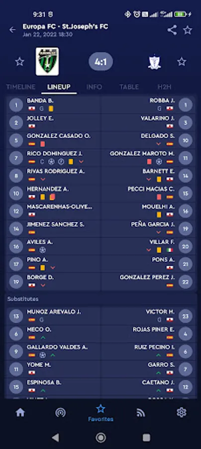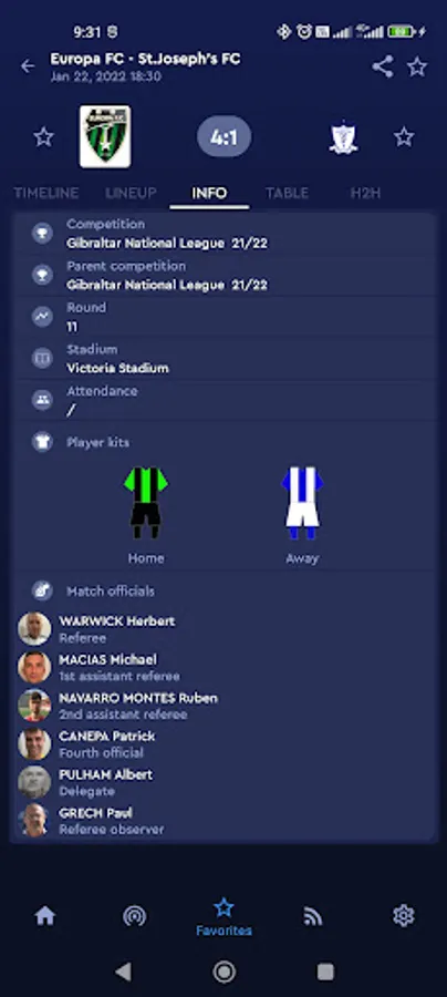 • Add Match, Team, Player or Competition to favorites for convenient quick access in the future