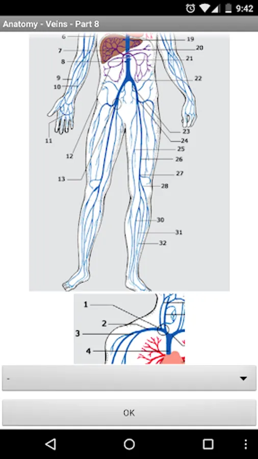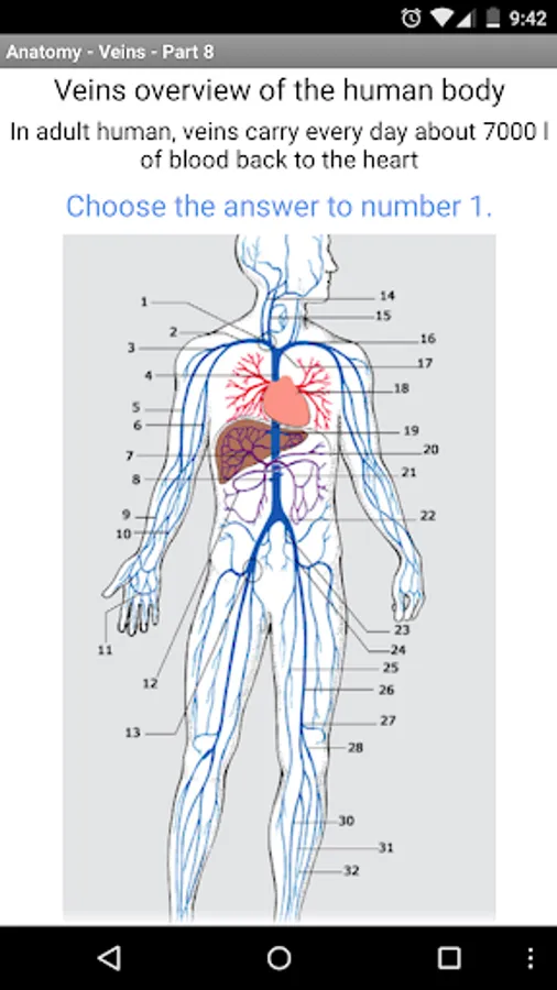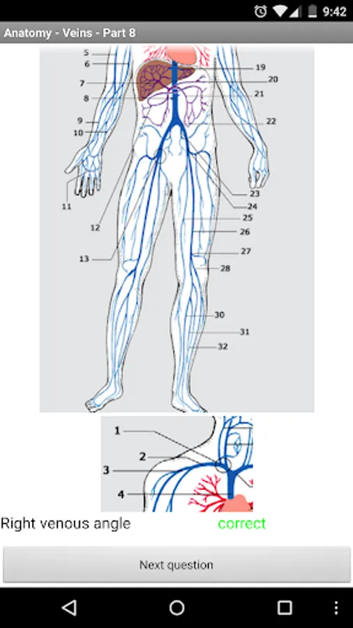 This app contains 31 main questions about veins of the human body.