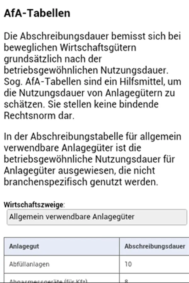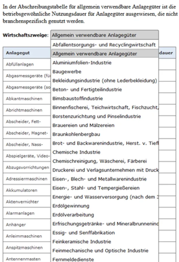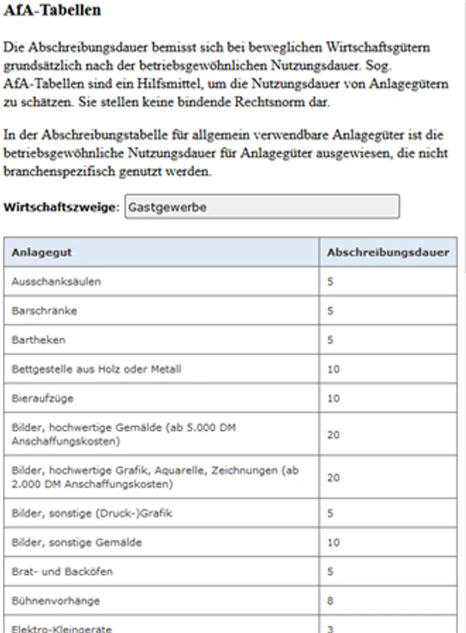 The amortization period is measured for moveable assets basically by the normal useful life. Undertow. Depreciation tables are a tool to estimate the useful lives of fixed assets. They do not constitute binding legal norm.