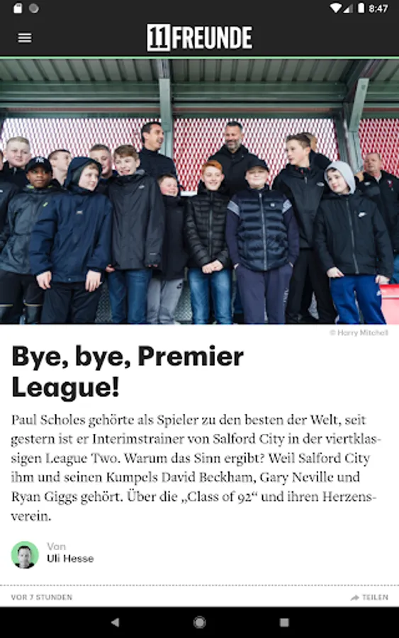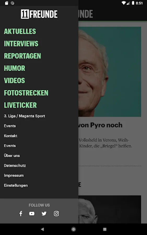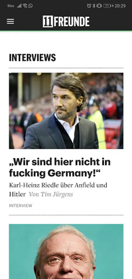 The 11FREUNDE app for football culture informs you daily about things that happen on and off the field. Here you'll find stories from the ashes and place around the corner from the glittering world of European football leagues. Here you can read interviews with legends and those who want to be there. Here you following our live ticker of real-time reports from the games of the Bundesliga, Champions League and the national team.