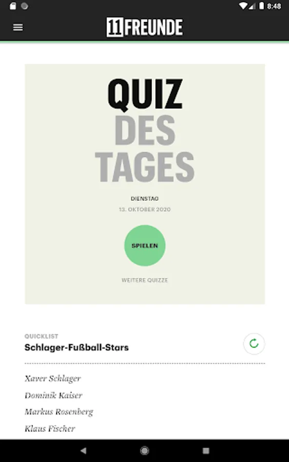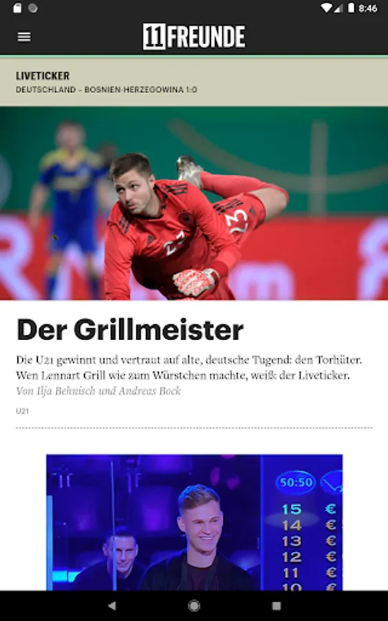 11FREUNDE is from the beginning always on the ball: enigmatic stories, interviews on the day, humorous observations, sharp comments - here you get daily new reading material, directly from the editors!