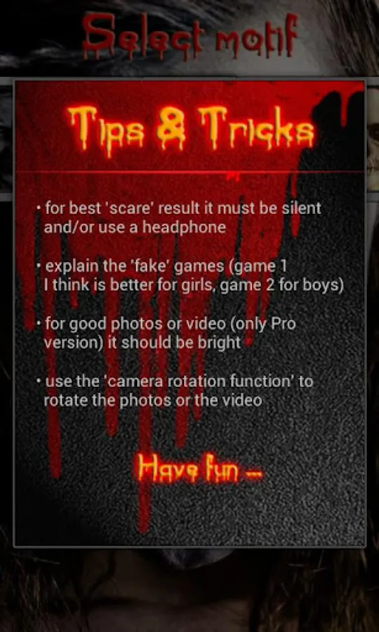 If you want to play a joke on one of your friends – or whoever you want - and you are trying to scare them, this small Horror app is the right one for you to play a prank.