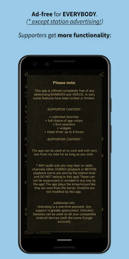 β The app contains some supporters' features (paid). This is in return for not showing annoying ads.