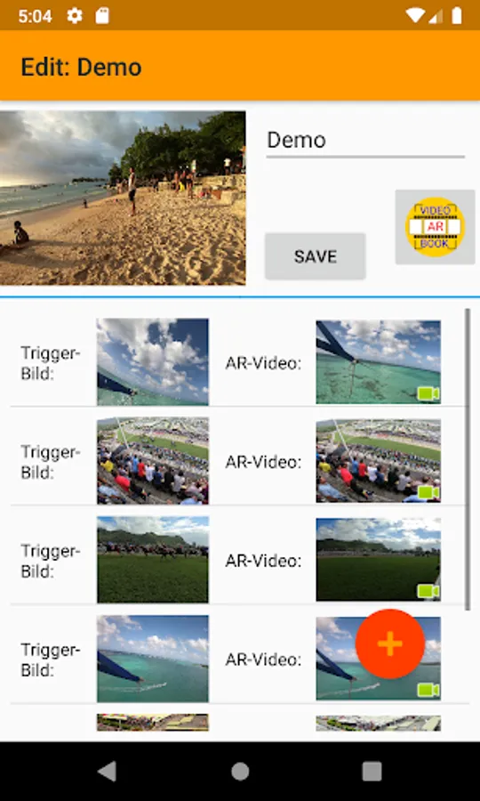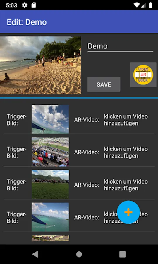 Create a new videobook. Add trigger pictures and then to each picture a video.