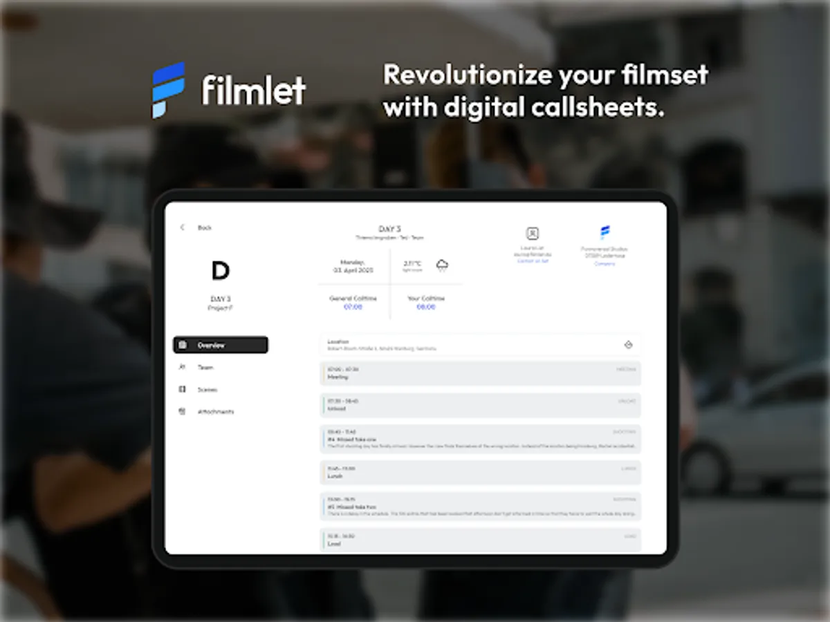 Save time and communicate seamlessly - by using filmlet to create, share and receive callsheets.