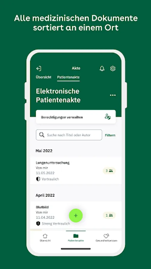 "AOK Mein Leben" - the electronic patient file (ePA) of your AOK - offers you a secure and convenient way to manage your health data. Have your medical documents from your attending physicians and therapists uploaded, add your own data to them and create your own health history - this can be conveniently and safely combined with other med. share facilities. This gives your doctors a quick overview and leaves more time for your treatment.