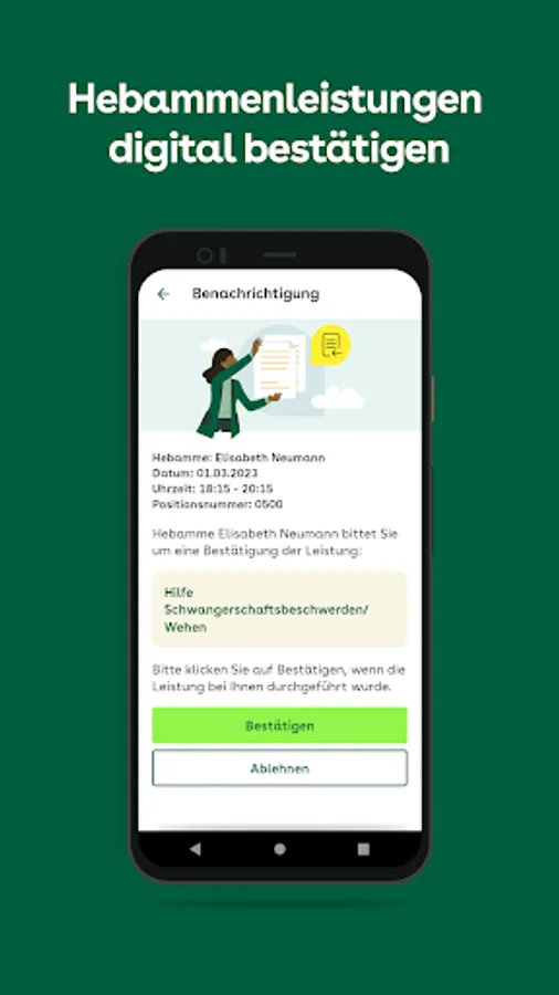 With the AOK GESA app, people insured with AOK Lower Saxony can digitally confirm the services of a midwife.
