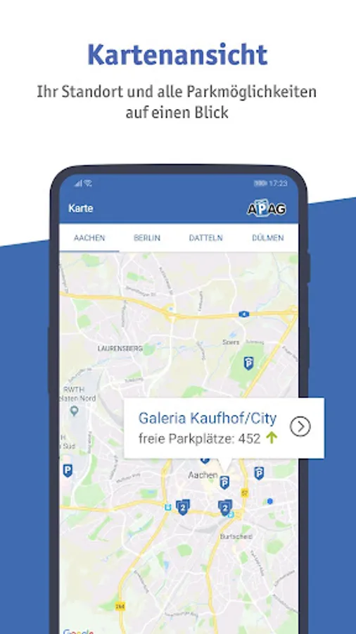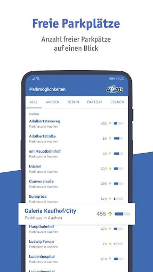 🔷 Number of free parking spaces in all APAG parking garages in Aachen, Berlin, Datteln and Dülmen