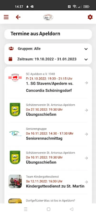 This app provides information on dates of clubs, groups and associations from the village of Apeldorn (city of Meppen) in Emsland. Simply select your group, the desired period and have the local appointments displayed everywhere.