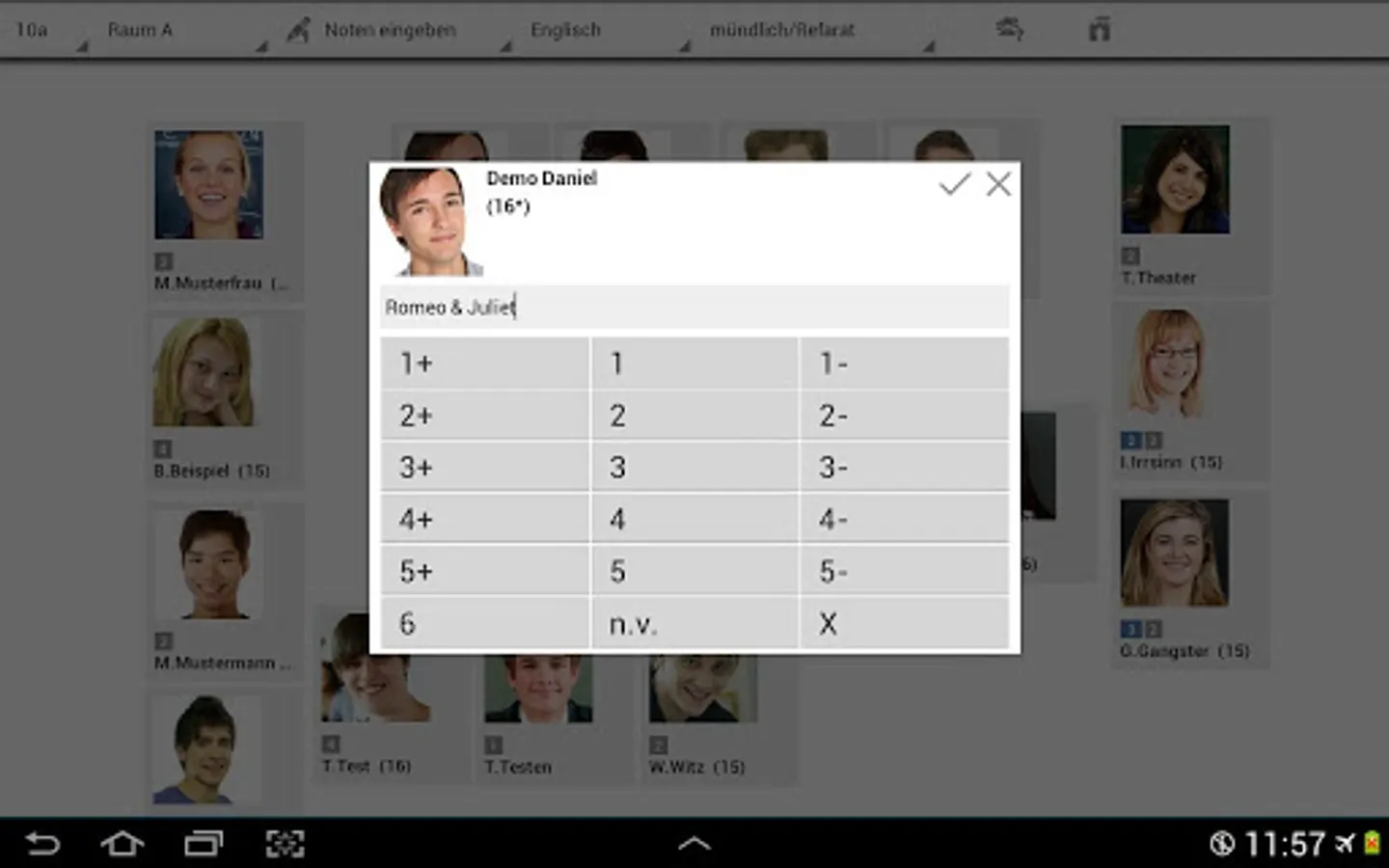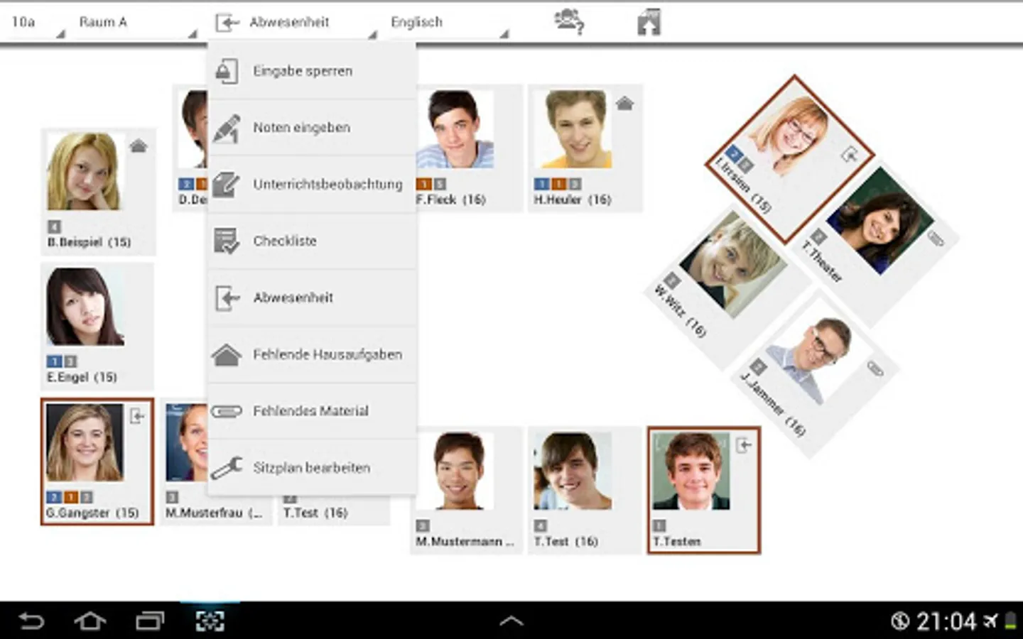 … Seating plan where you can directly enter grades, entries (like attendance), check checklist and much more by just tapping on a students field.