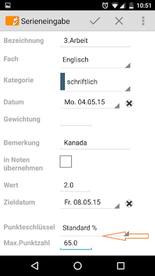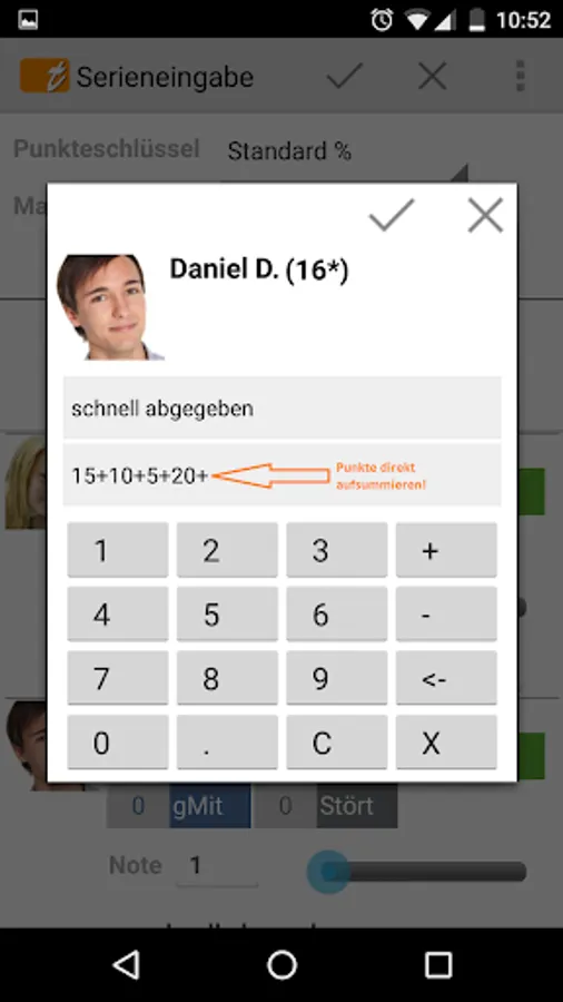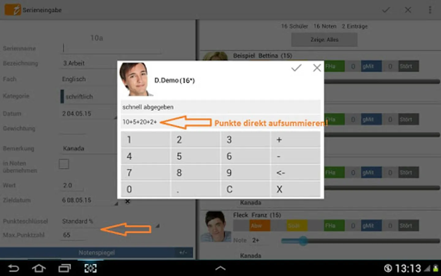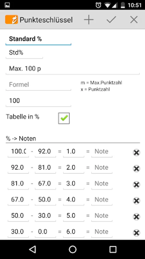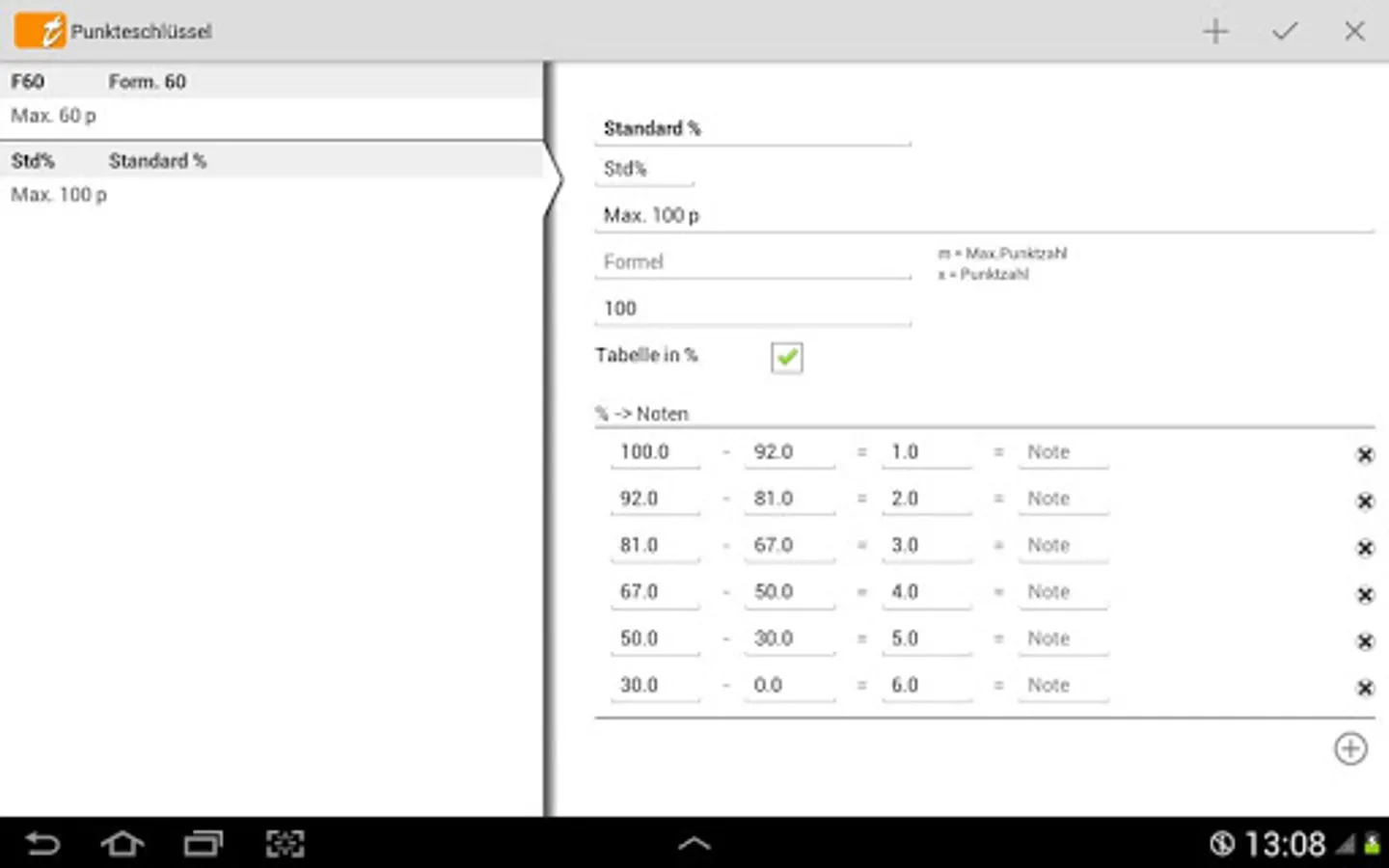 - Points- / error / percent key with the entered scores can be directly converted into scores
