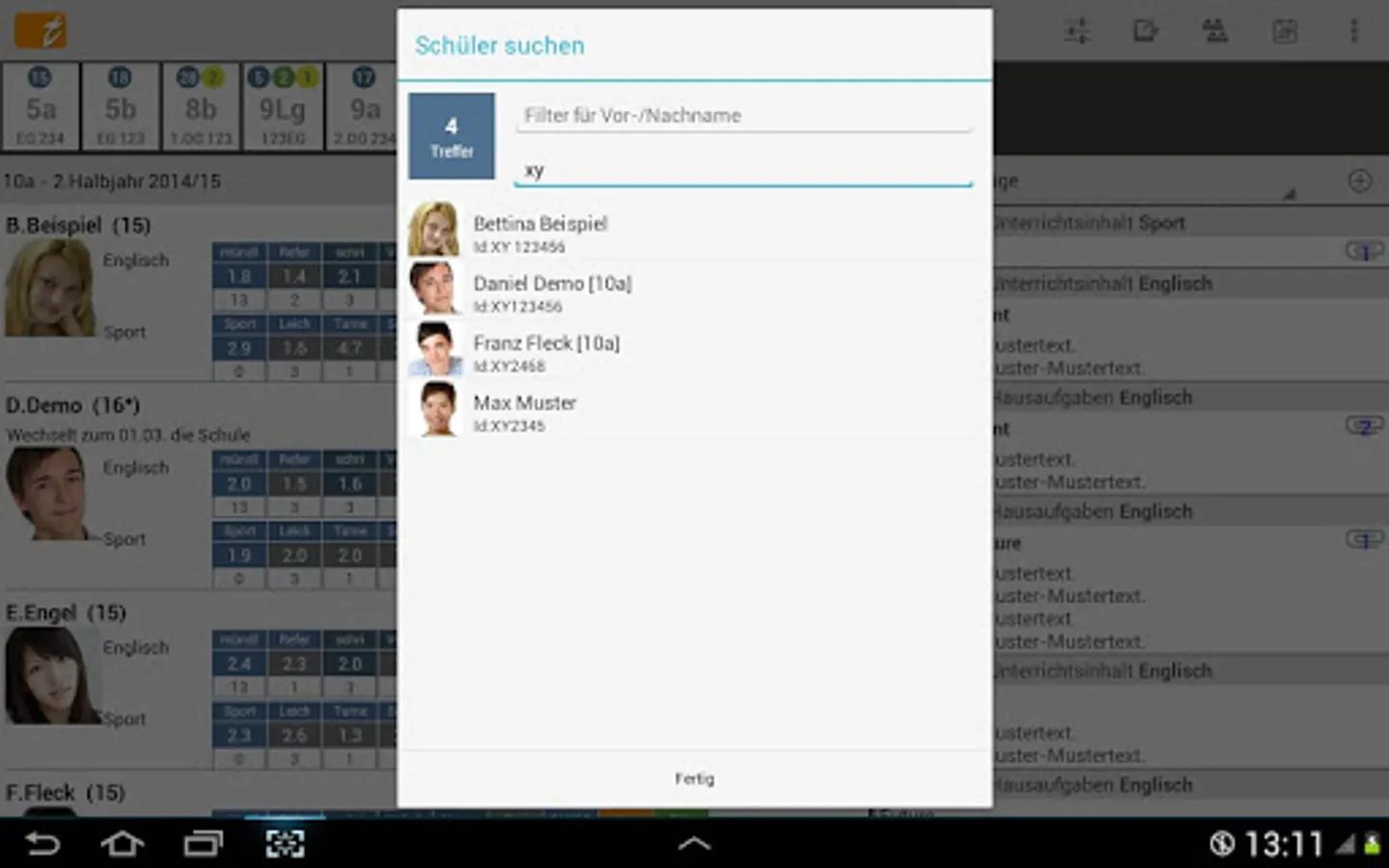 - Student-search searches pupils in all classes and automatically scrolls to the selected students