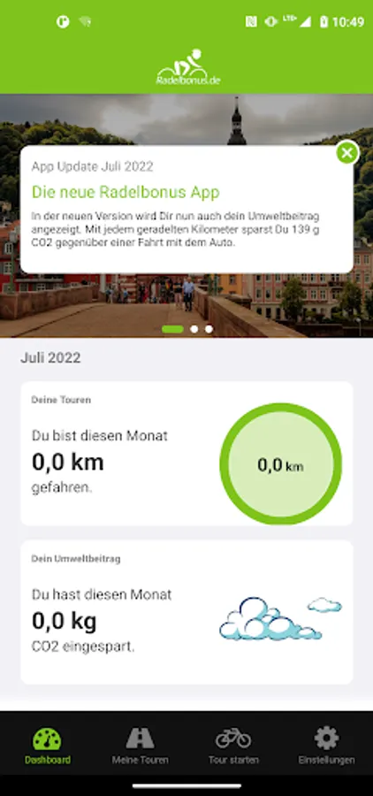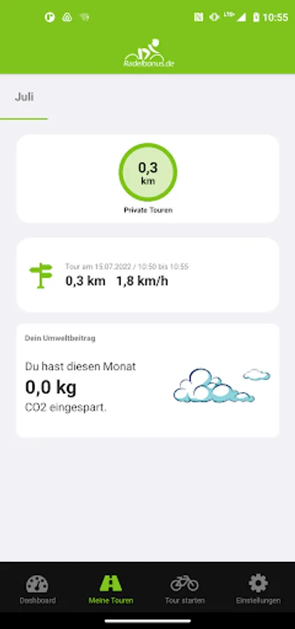 With the radelbonus app, you can easily record your bike tours and automatically transfer them to the radelbonus employer portal. The app shows your monthly cycled tour kilometers and the required kilometers meet your employer's bonus program. The app distinguishes whether you end or start your journey at work (business trip) or whether you are traveling in your free time.