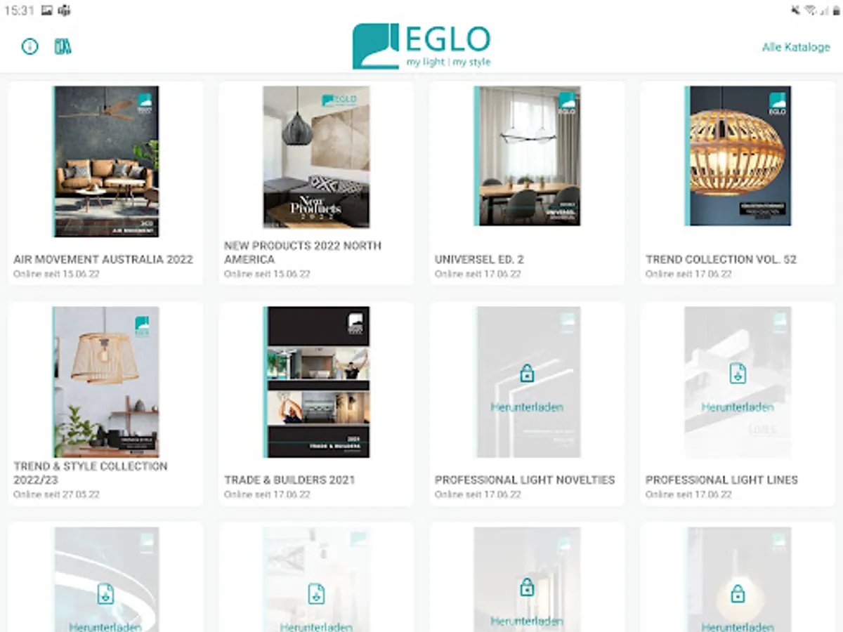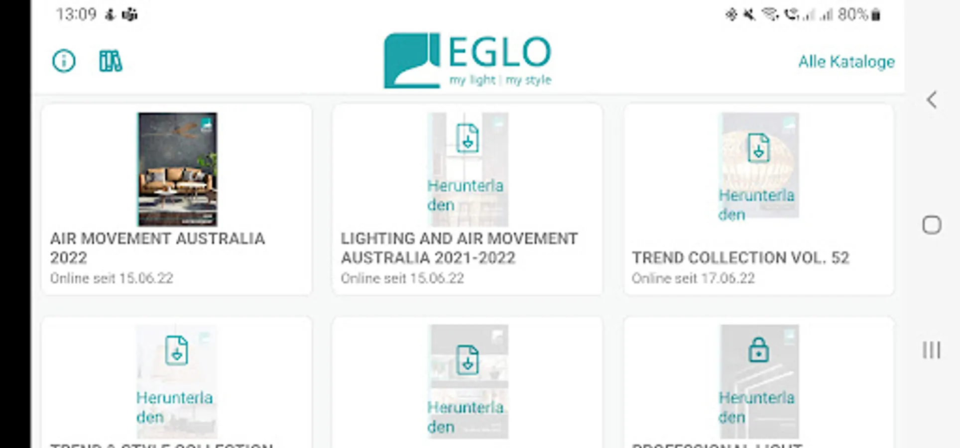 With the EGLO Kiosk it is now possible to browse through our wide range of products in digital catalogues. In addition to some features - which are also available offline - such as the choice between several languages or the full-text search, it is even possible to share and send catalogues. In Corporate Collections you will also find more detailed article information and additional images of a product in the detailed view.