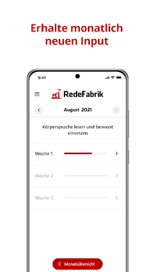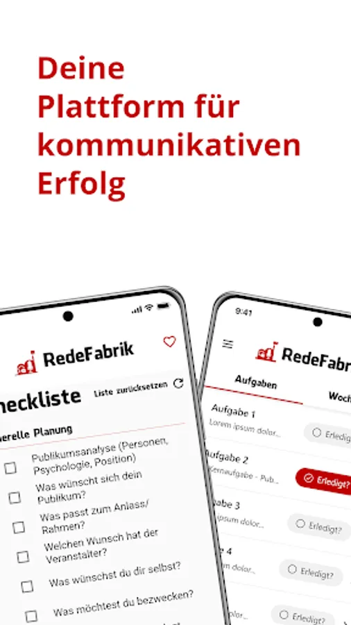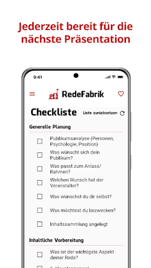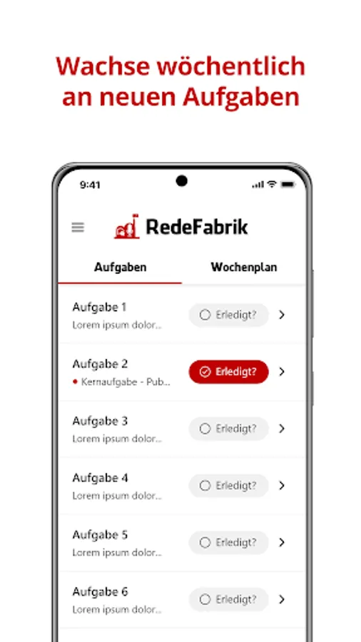 Browse through in-depth videos and podcast episodes and always be up to date. The checklists and daily tasks also help you to improve your communication on a daily basis. If you want to contact Benedikt and the RedeFabrik team directly, you can also do so via the app... So download the app now to get strong impulses for your charisma!