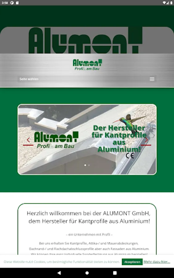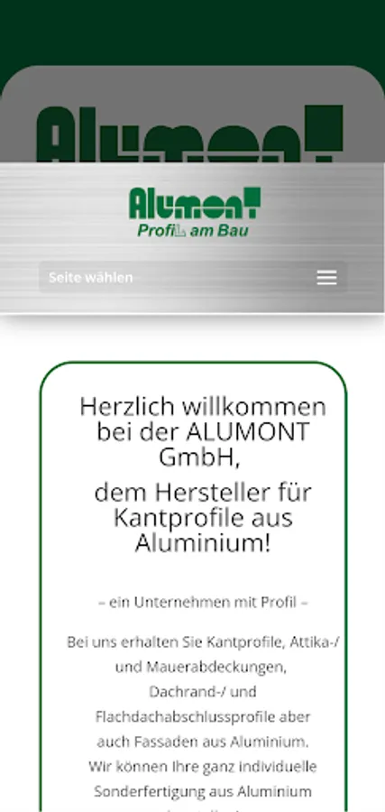Roof edge and flat roof end profiles as well as aluminum facades.