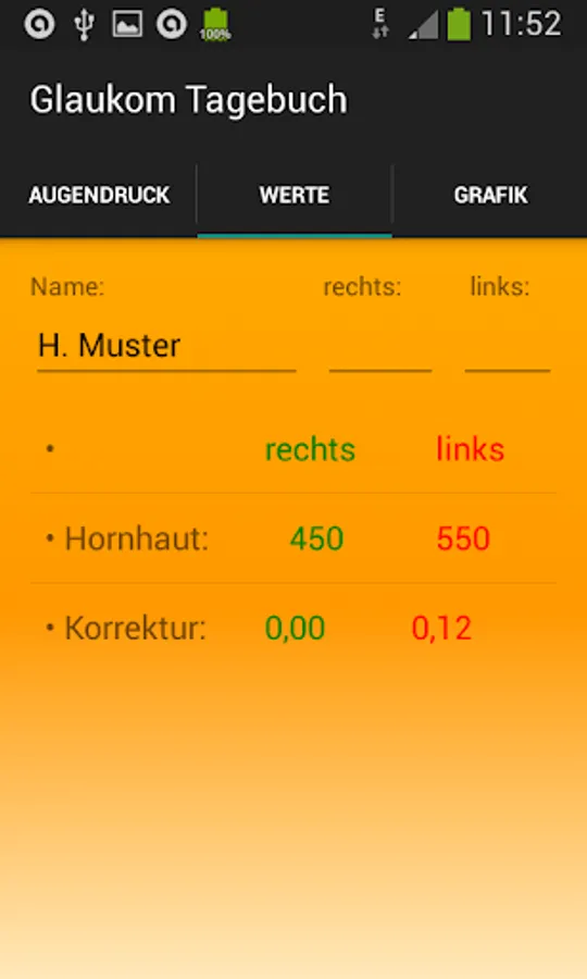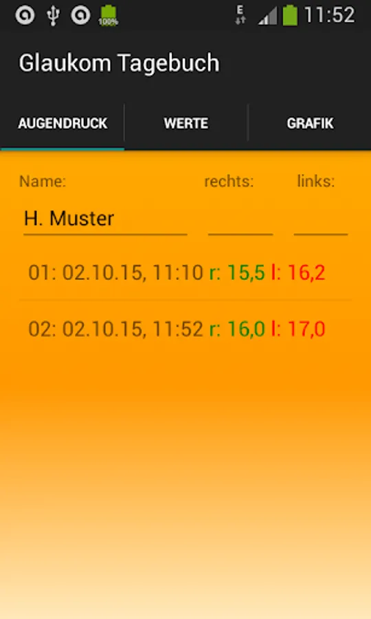 The Glaucoma Diary stores your intraocular pressure values in a table and shows it graphically. This app was developed by D. Claessens, MD. Additionally the app calculates the values depending on your corneal thickness.