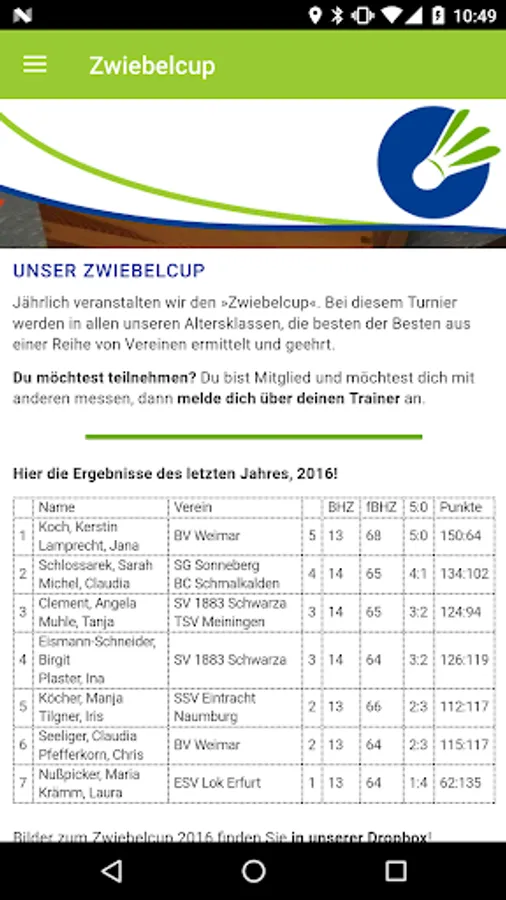 Then 'consistent with our app stay up to date on the' first Badminton Club Weimar "