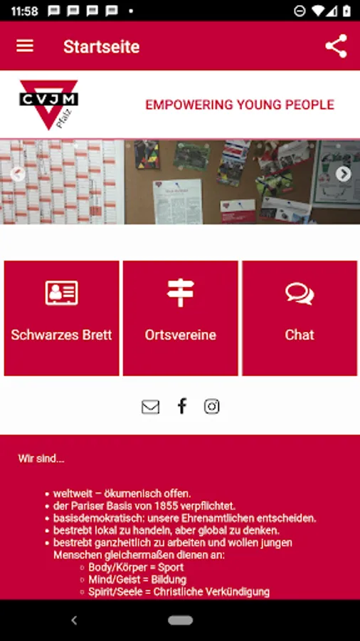 Information and dates from the YMCA in Rhineland-Palatinate. Chat for local clubs and YMCA groups. Read friends' letters, post information on the bulletin board. Possibility to register for offer (partially), find contact addresses.