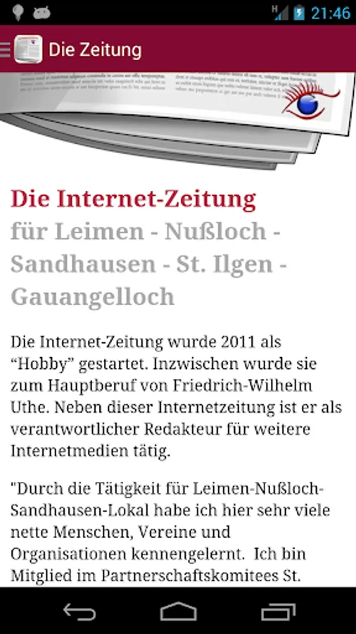 The Internet newspaper for glues, Nussloch and sand Hausen. Continuously updated. For HER site.