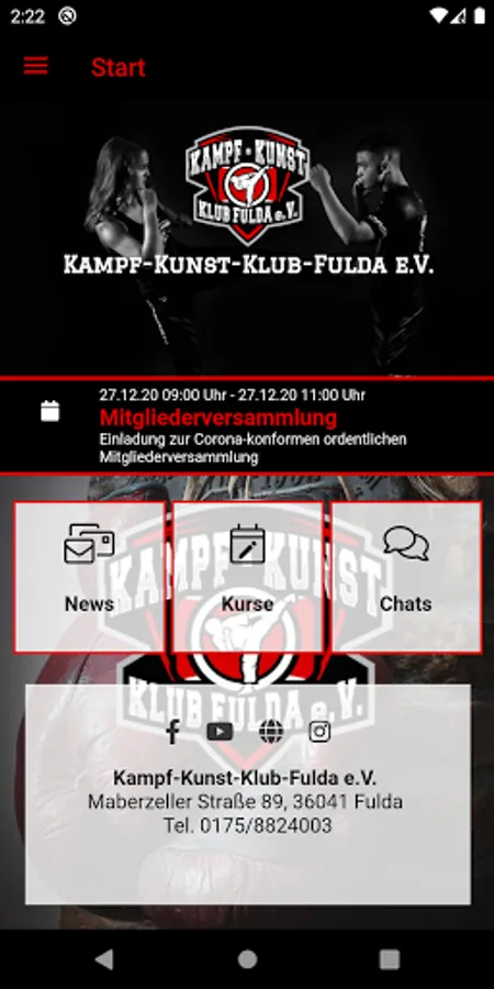 From now on, not only our members but also the association are mobile. In our own app you can find out about the latest from the club, search for sports, view dates and become a fan reporter. The Kampf Kunst Klub Fulda e.V. offers interesting insights for fans, members and interested parties with this app.