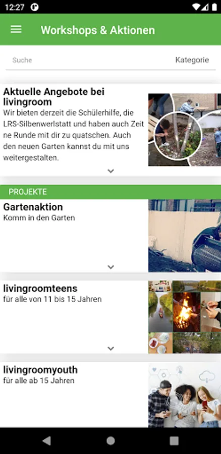 If you have already been to livingroomkids, livingroomteens, livingroomyouth, the app offers you the opportunity to communicate in closed chats within your age group, to ask questions, to receive news and general information and to register digitally for workshops and excursions. So you can stay up to date and receive reminders on dates and topics of interest to you through the push messages.