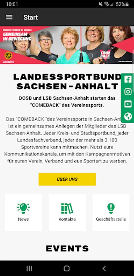 Due to the corona pandemic, the LSB Saxony-Anhalt lost almost 11,000 members, training or even competitions were out of the question for a long time. Thus, the "COMEBACK" of club sports in Saxony-Anhalt is a common concern of the members of the LSB Saxony-Anhalt. Every district and city sports federation, every regional professional association, every one of the more than 3,100 sports clubs can take part. Use your communication channels to advertise your club, association and sport with the campaign motifs. In addition to information about the LSB Sachsen-Anhalt e.V., this app is intended to be an important accompanying medium for the "COMEBACK" campaign.