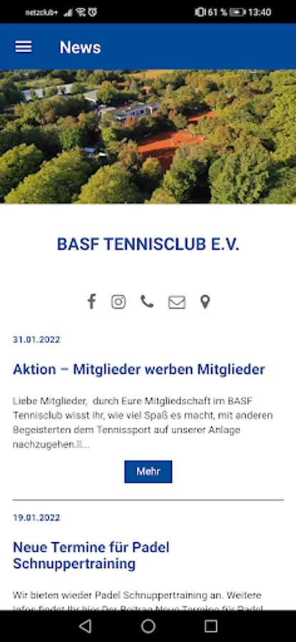 From now on not only our members but also the association are mobile. In our own app, you can, among other things, inform about news from the club, look for sports offers, see appointments and become a fan reporter. The BASF Tennis Club e.V .. offers with this app interesting insights for fans, members and interested parties.