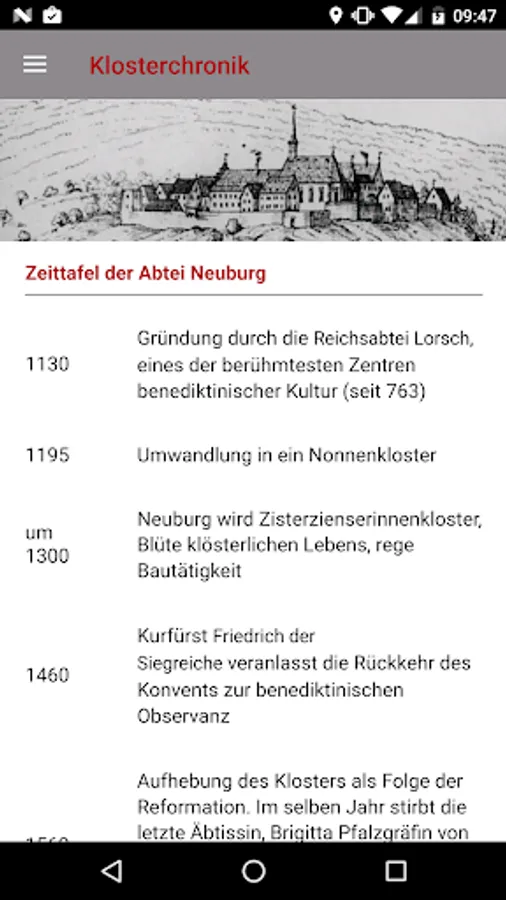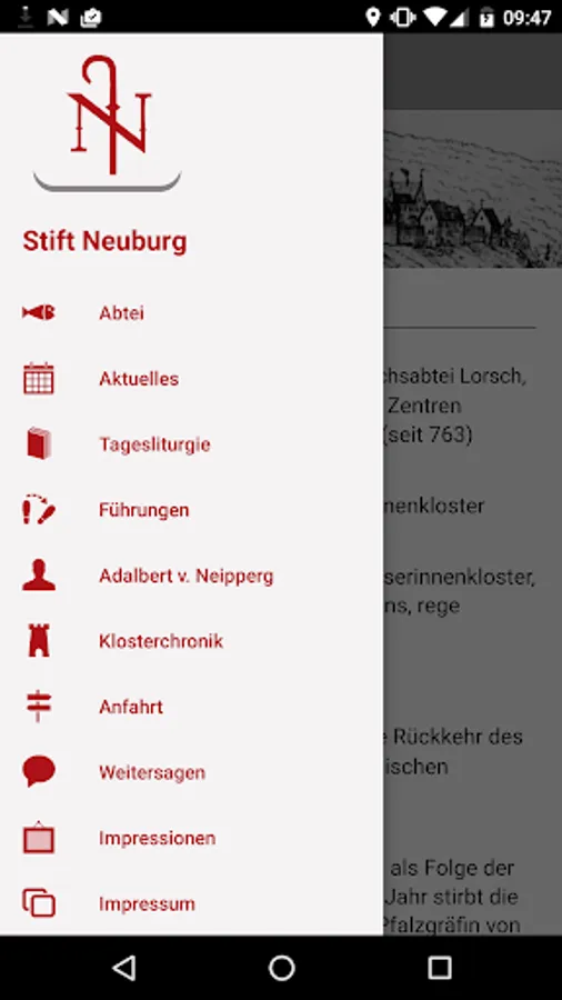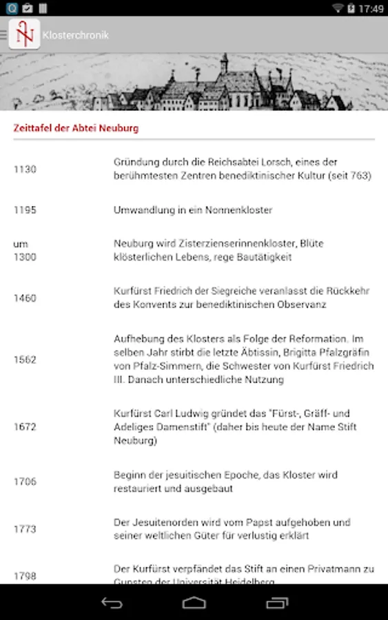 Information about the Benedictine Abbey Stift Neuburg in Heidelberg