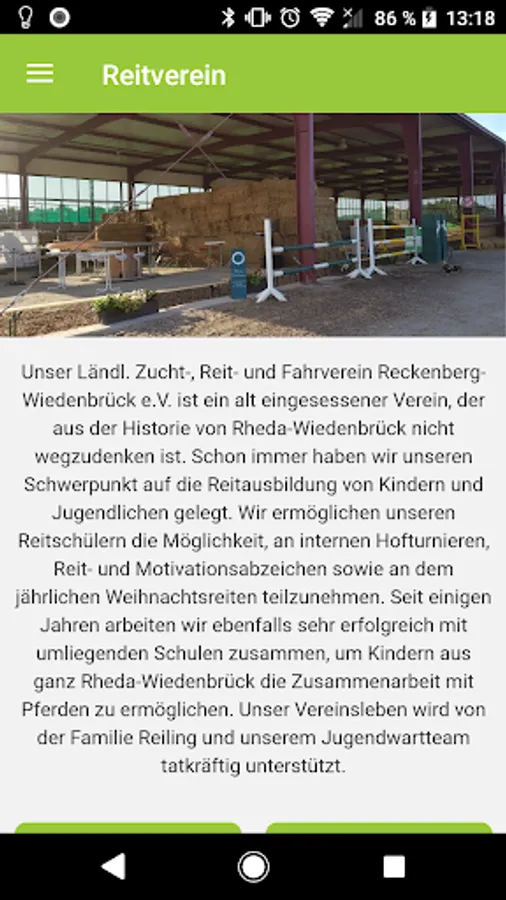 Welcome to the Rural Breeding, Riding and Driving Club Reckenberg Wiedenbrück e.V. In our club app you can find out about our riding club, offers and current dates. You will also find information about club life and much more.