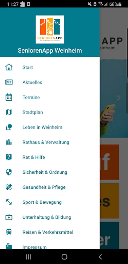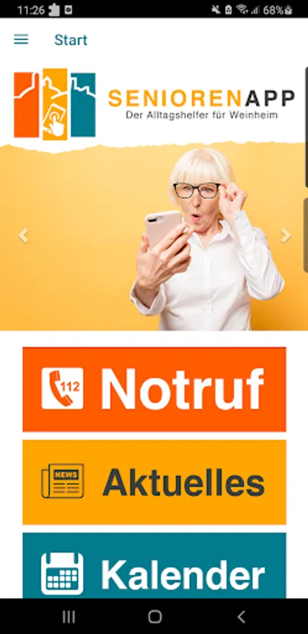The "SeniorenApp Weinheim" (on Bergstrasse) is the digital everyday helper for senior citizens from the two-castle town. From "Living in Weinheim" to "Town Hall & Administration", "Advice & Help", "Security & Order", "Health & Care", "Sport & Exercise", "Entertainment & Education", to "Travel & Means of transport "is here where Weinheimers of advanced age can easily find their way around and quickly access (local) information.