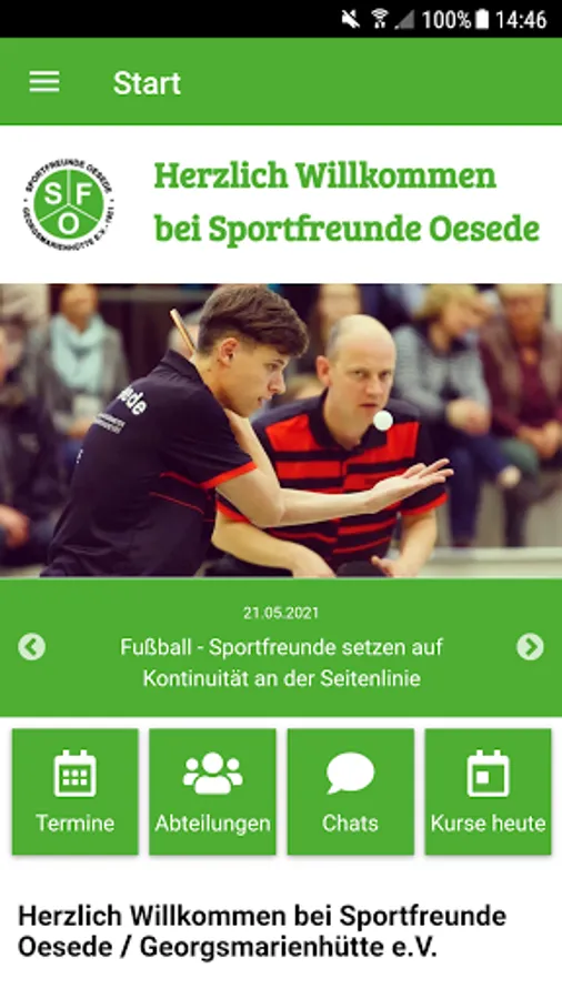 The app provides information from the largest sports club in the city of Georgsmarienhütte - Sportfreunde Oesede. Here you will find information about our diverse and varied sports offer for everyone. Get informed about news through push messages, transfer important dates from the app directly to your calendar and register for courses. Give us feedback about our offer and chat with each other in your groups.