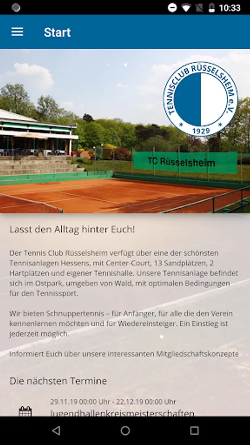 In our own app, you can find out about the latest from the club, search for sports, view dates and become a TCR fan reporter, among other things. With this app, the TC Rüsselsheim e.V. offers interesting insights for fans, members and interested parties.