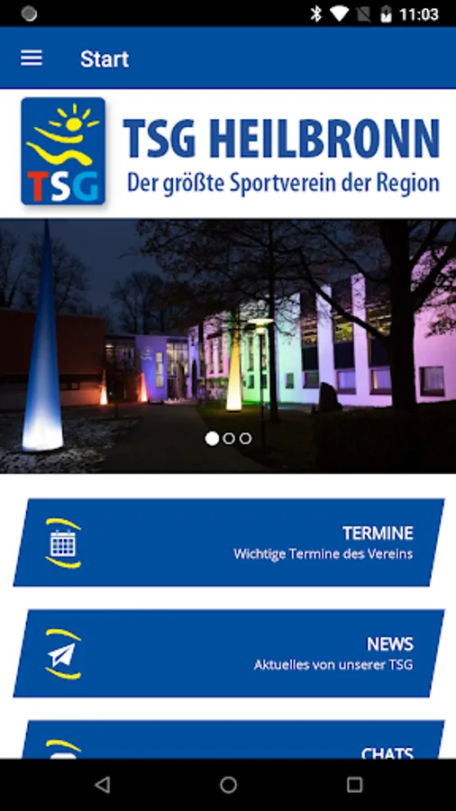 Be well informed with our integrated news and appointment module. Choose the channels you would like to be informed about with push messages directly on your smartphone. The chat function and the link to our social networks give you a direct line to your department or sports group. As a TSG reporter, you can also become active yourself by sharing your photo experiences from the sports fields and gyms in the APP.
