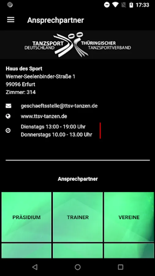 The TTSV App is provided free of charge by the Thuringian Dance Sport Association e.V. with the support of the DOSB. You have direct access to the latest news, event dates and results. Dive into the world of dance sports in the heart of Germany and find out about dance sports, dance tournaments, dance events and much more. in Thuringia.