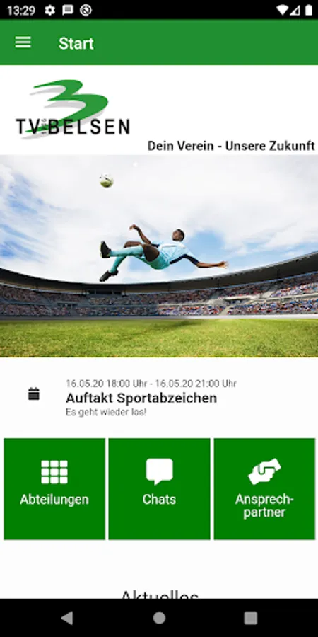 The TV Belsen now on your smartphone! The TVB app provides everything about your club, whether news, pictures or appointments, compact and clear. And on request you can get a push message whenever there is something new in your department or in the entire club. The following functions are currently integrated: