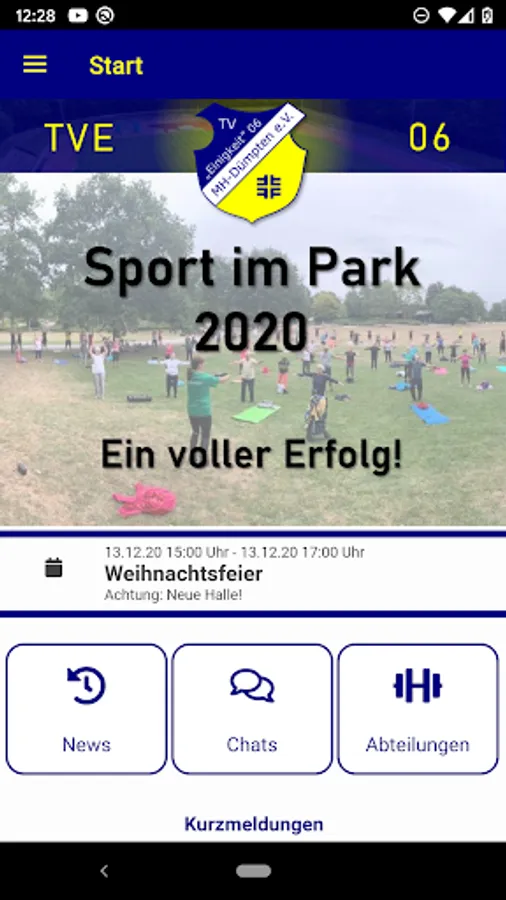 With our club app, all those interested in TV Unity 06 are always "up to date". We provide information about sports and training offers, failures via push notifications, dates and everything that is new in club life. In addition, the members of individual groups and courses can communicate directly via the chat function. We want to simplify registrations for campaigns and making contact.