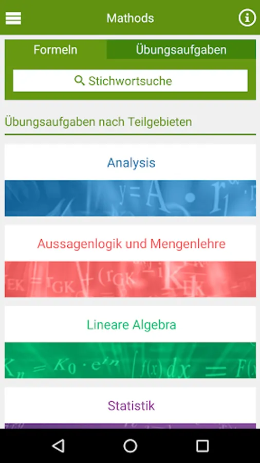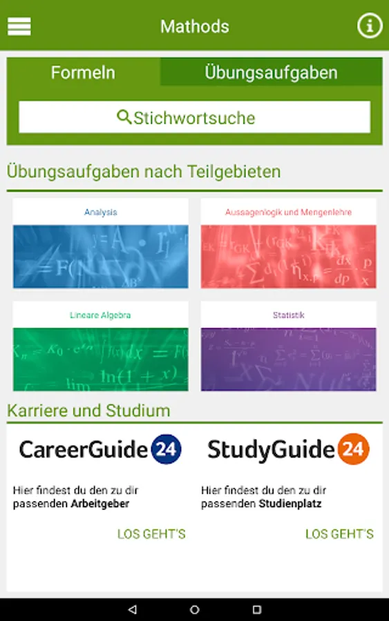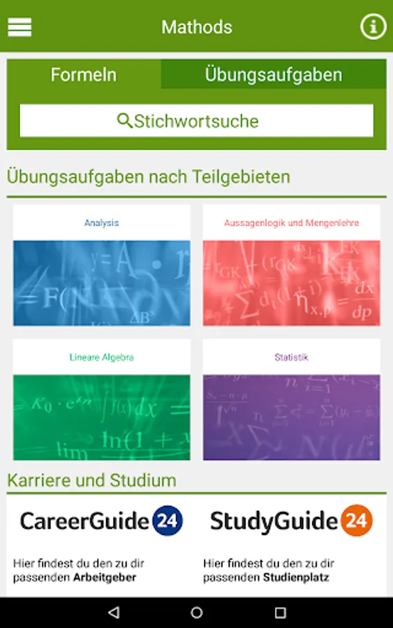 The mathods app is completely free and there are no hidden costs within the mathods app - as is common with many other suppliers. After installing the app you mathods initially, only the formulary and exercises for math and statistics with results available.